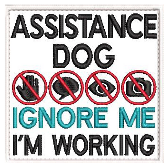 ASSISTANCE DOG Ignore Me I'm Working with 4 symbols embroidered patch - 2 sizes