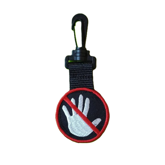 NO TOUCHING clip on tag - 4 sizes - double sided - Hard plastic clip with sturdy 1 inch strapping.